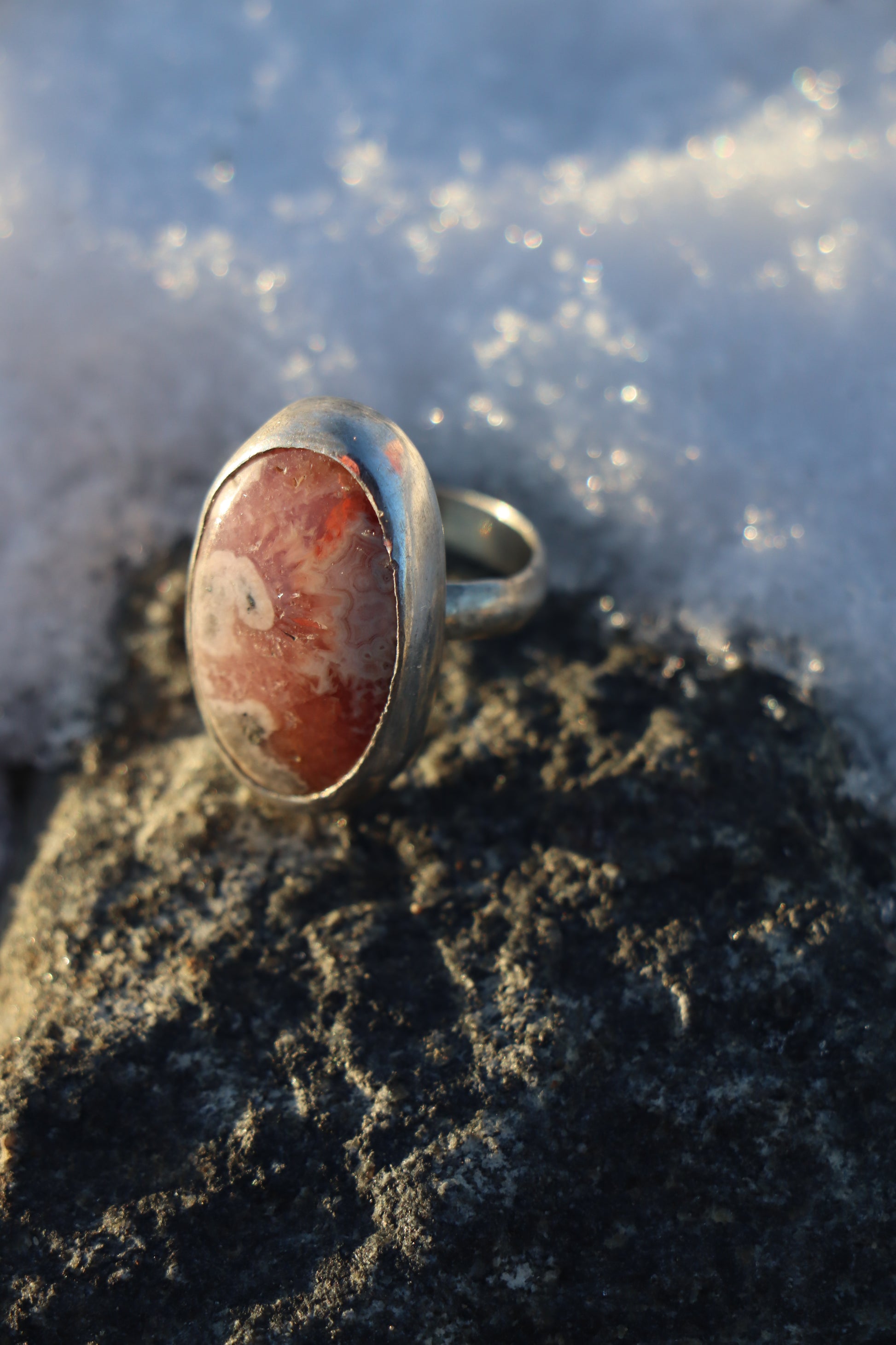 Rhodochrosite Stone bezel set in 925 Sterling Silver